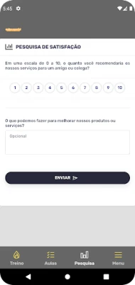 - Ficha de treino completa na tela do celular; - Evolução do treinamento; - Marcar aulas pelo app; - Pesquisa de satisfação; - Avaliação Física.