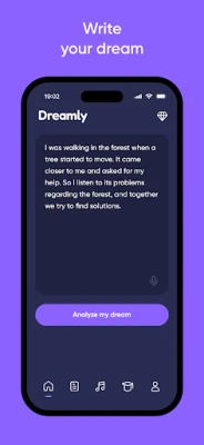 Dreamly uses advanced AI to analyze your dreams. It identifies emotional themes and recurring symbols and delivers deep insights into your subconscious.
